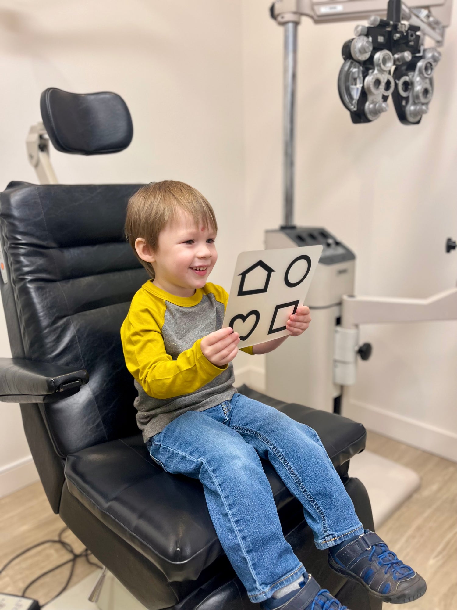 - Practice identifying shapes, letters, or numbers on a pretend vision test chart if they are old enough.